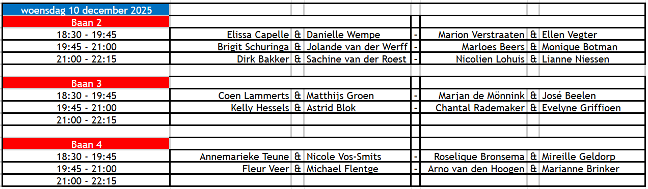 Duco - Speelschema woensdag 10 december 2025
