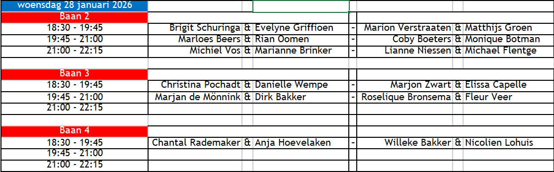 Duco - Speelschema woensdag 28 januari 2026