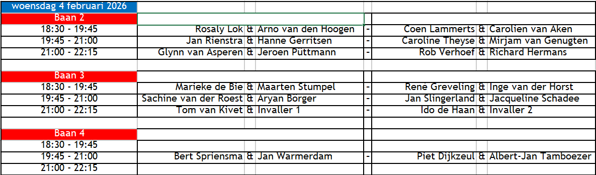 Duco - Speelschema woensdag 4 februari 2026