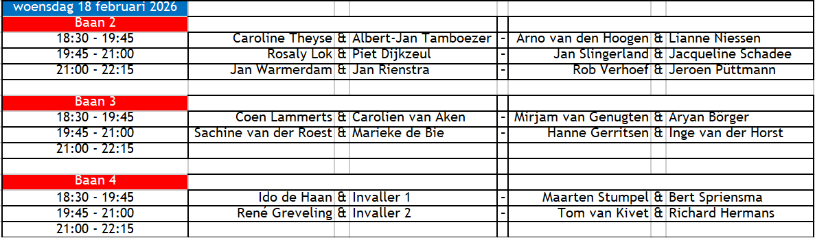 Duco - Speelschema woensdag 18 februari 2026