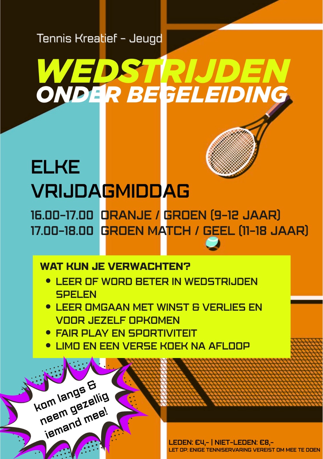 Ben jij lid van Tennisvereniging Duinvliet en jouw vader of moeder ook, dan kunnen jullie vanaf nu in de weekenden samen vrij tennissen.